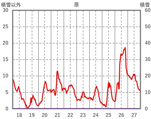 | 日 | 時 | 気温 | 降水 | 風向/風速 | 日照 | 積雪 | 降雪 |