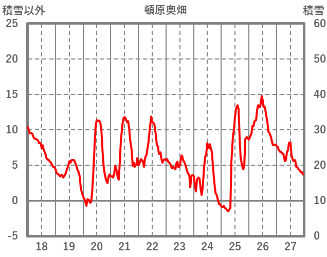 | 日 | 時 | 気温 | 降水 | 風向/風速 | 日照 | 積雪 | 降雪 |