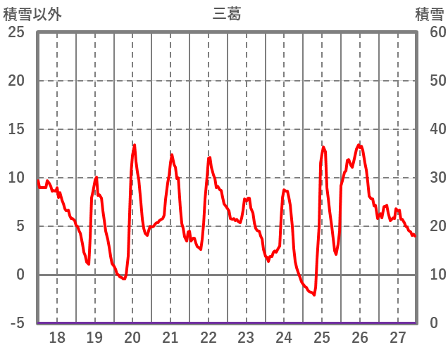| 日 | 時 | 気温 | 降水 | 風向/風速 | 日照 | 積雪 | 降雪 |