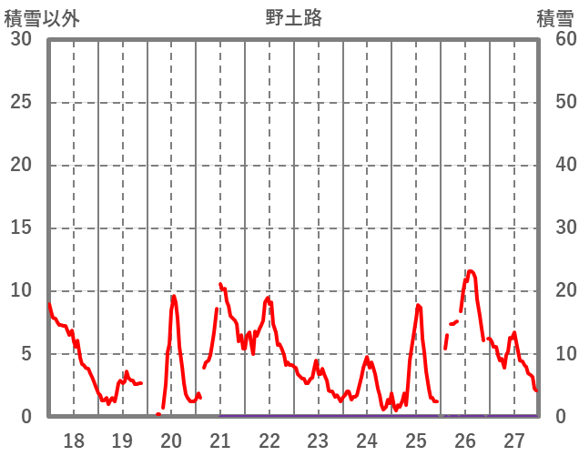 | 日 | 時 | 気温 | 降水 | 風向/風速 | 日照 | 積雪 | 降雪 |