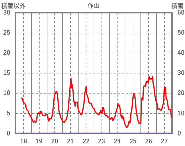 | 日 | 時 | 気温 | 降水 | 風向/風速 | 日照 | 積雪 | 降雪 |