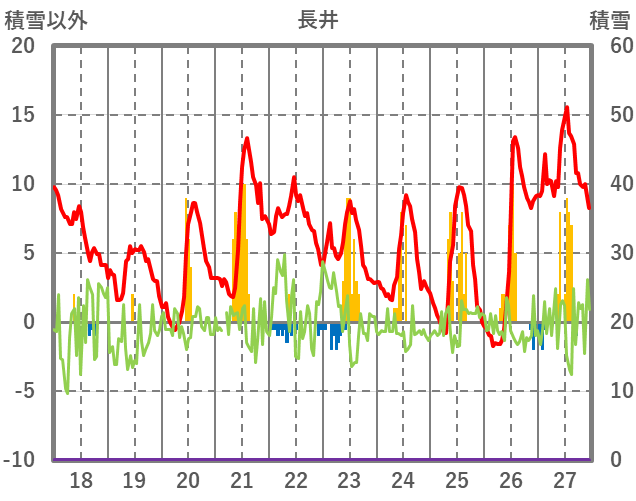 | 日 | 時 | 気温 | 降水 | 風向/風速 | 日照 | 積雪 | 降雪 |