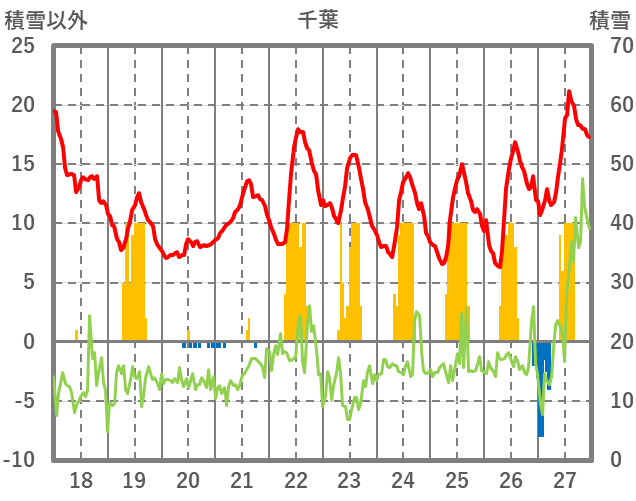 | 日 | 時 | 気温 | 降水 | 風向/風速 | 日照 | 積雪 | 降雪 |