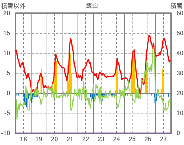 | 日 | 時 | 気温 | 降水 | 風向/風速 | 日照 | 積雪 | 降雪 |