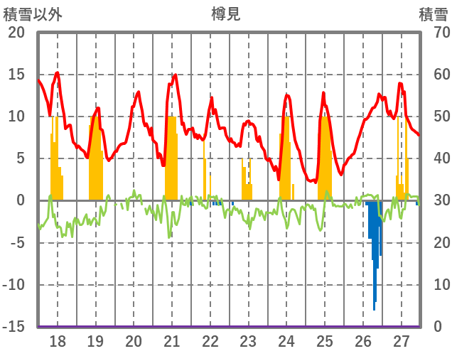 | 日 | 時 | 気温 | 降水 | 風向/風速 | 日照 | 積雪 | 降雪 |
