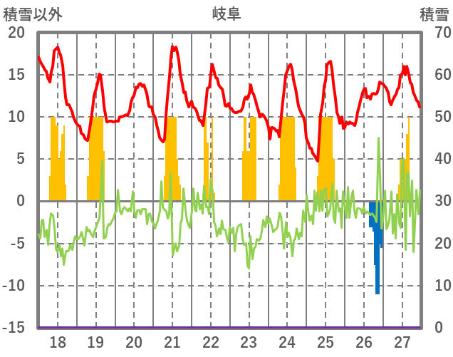 | 日 | 時 | 気温 | 降水 | 風向/風速 | 日照 | 積雪 | 降雪 |
