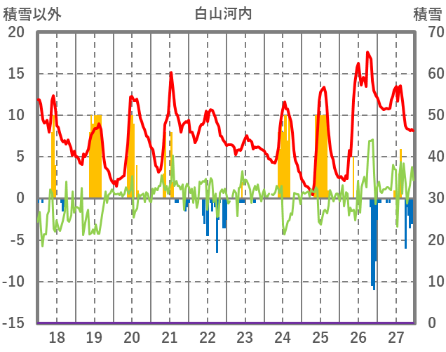 | 日 | 時 | 気温 | 降水 | 風向/風速 | 日照 | 積雪 | 降雪 |