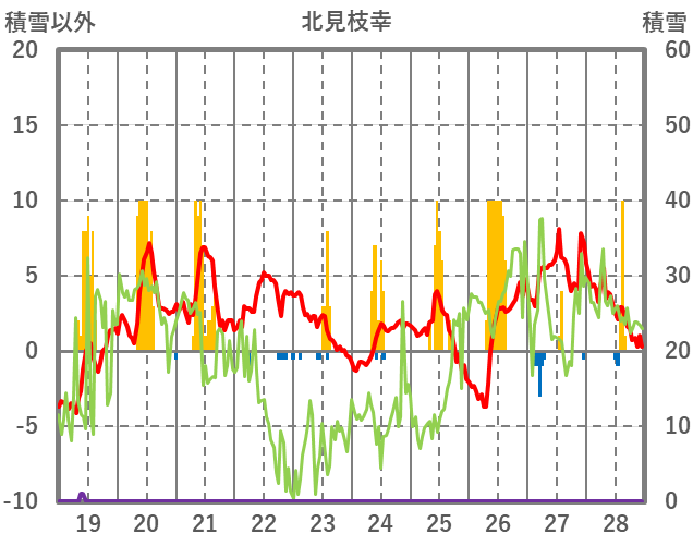 | 日 | 時 | 気温 | 降水 | 風向/風速 | 日照 | 積雪 | 降雪 |