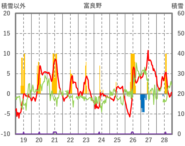 | 日 | 時 | 気温 | 降水 | 風向/風速 | 日照 | 積雪 | 降雪 |