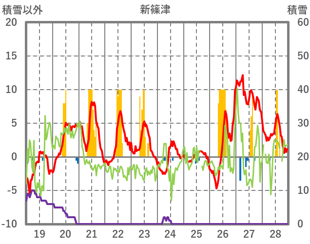 | 日 | 時 | 気温 | 降水 | 風向/風速 | 日照 | 積雪 | 降雪 |