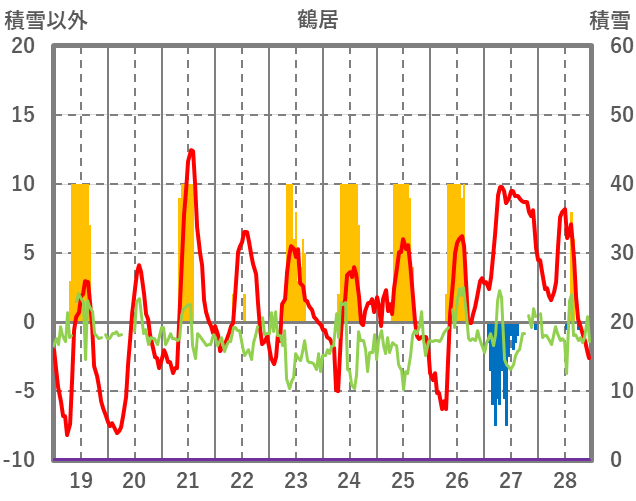 | 日 | 時 | 気温 | 降水 | 風向/風速 | 日照 | 積雪 | 降雪 |