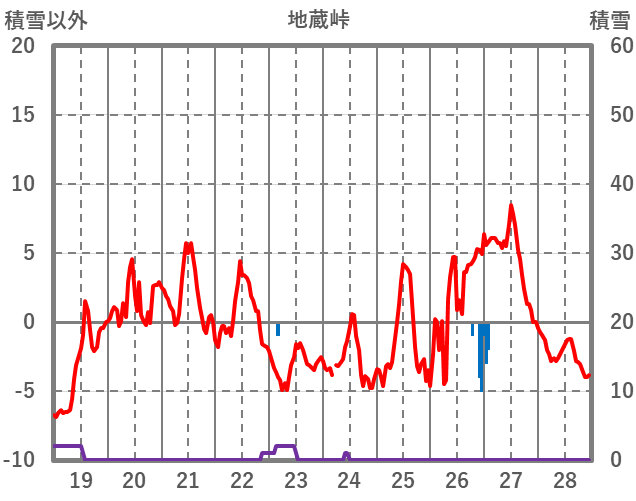 | 日 | 時 | 気温 | 降水 | 風向/風速 | 日照 | 積雪 | 降雪 |