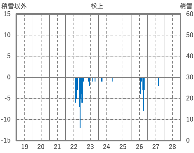 | 日 | 時 | 気温 | 降水 | 風向/風速 | 日照 | 積雪 | 降雪 |