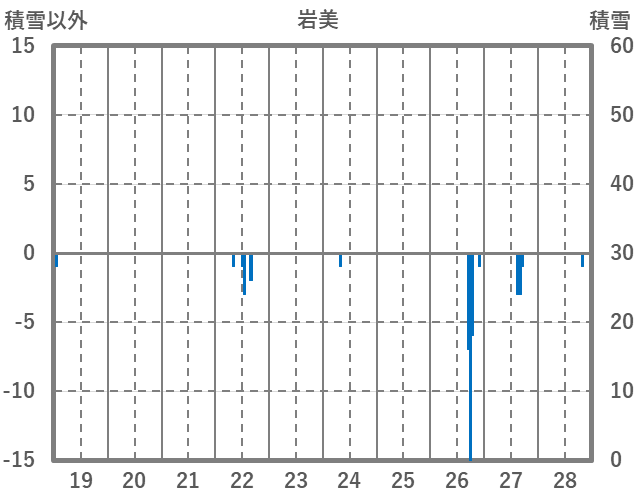 | 日 | 時 | 気温 | 降水 | 風向/風速 | 日照 | 積雪 | 降雪 |