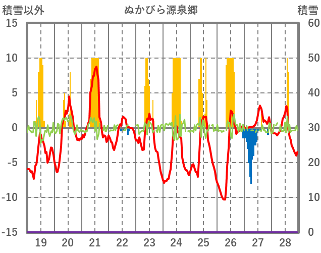 | 日 | 時 | 気温 | 降水 | 風向/風速 | 日照 | 積雪 | 降雪 |