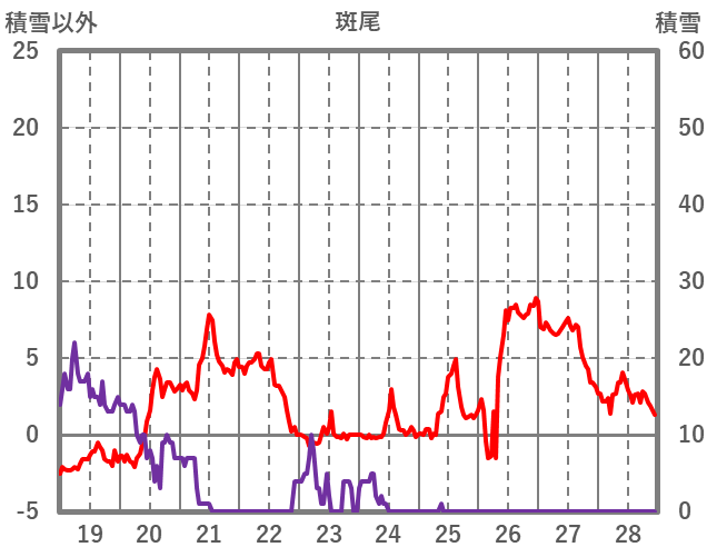 | 日 | 時 | 気温 | 降水 | 風向/風速 | 日照 | 積雪 | 降雪 |