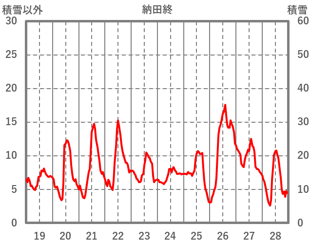 | 日 | 時 | 気温 | 降水 | 風向/風速 | 日照 | 積雪 | 降雪 |