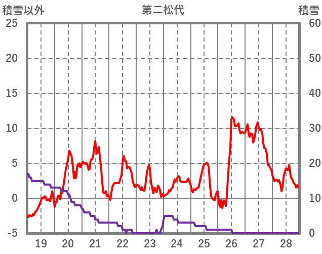 | 日 | 時 | 気温 | 降水 | 風向/風速 | 日照 | 積雪 | 降雪 |