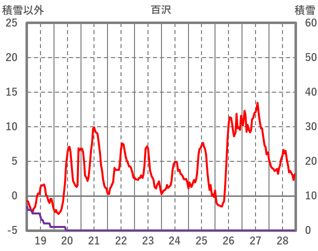 | 日 | 時 | 気温 | 降水 | 風向/風速 | 日照 | 積雪 | 降雪 |