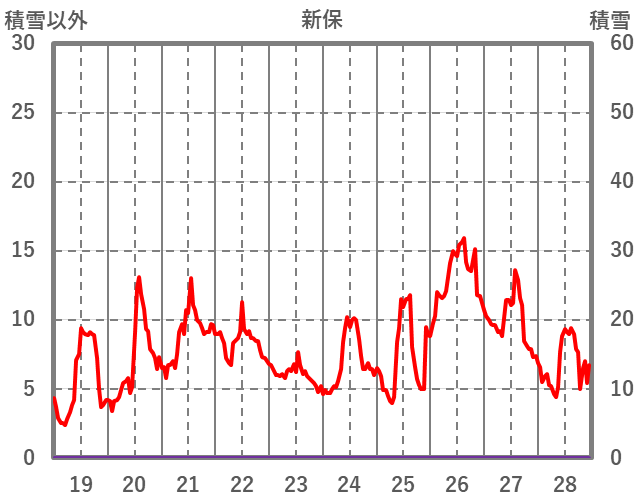 | 日 | 時 | 気温 | 降水 | 風向/風速 | 日照 | 積雪 | 降雪 |