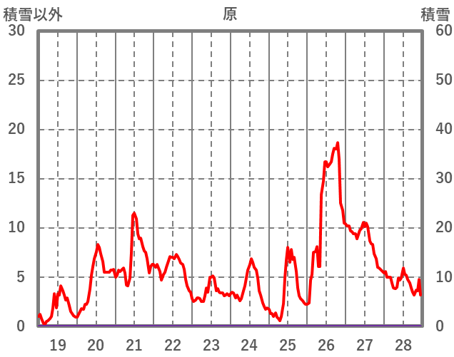 | 日 | 時 | 気温 | 降水 | 風向/風速 | 日照 | 積雪 | 降雪 |