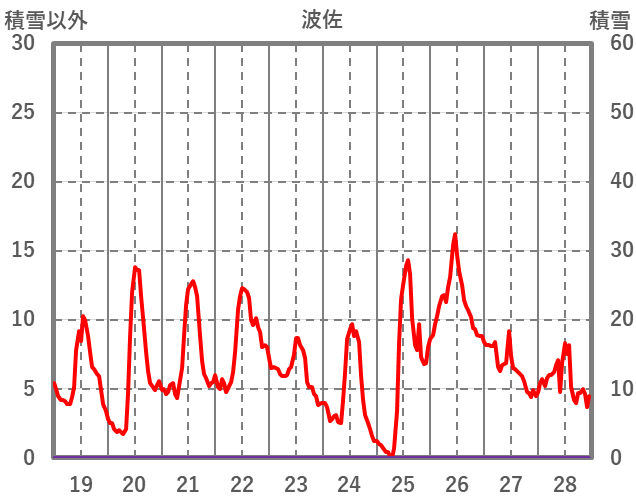 | 日 | 時 | 気温 | 降水 | 風向/風速 | 日照 | 積雪 | 降雪 |