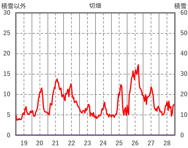 | 日 | 時 | 気温 | 降水 | 風向/風速 | 日照 | 積雪 | 降雪 |
