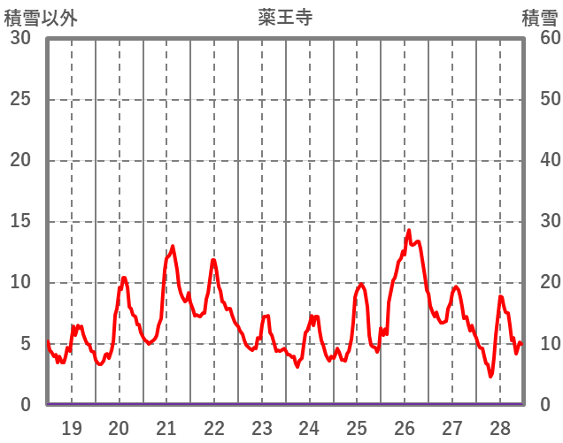 | 日 | 時 | 気温 | 降水 | 風向/風速 | 日照 | 積雪 | 降雪 |