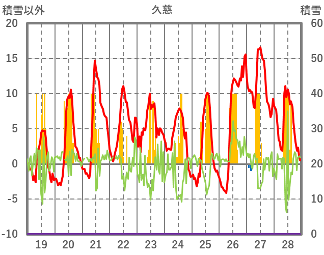 | 日 | 時 | 気温 | 降水 | 風向/風速 | 日照 | 積雪 | 降雪 |