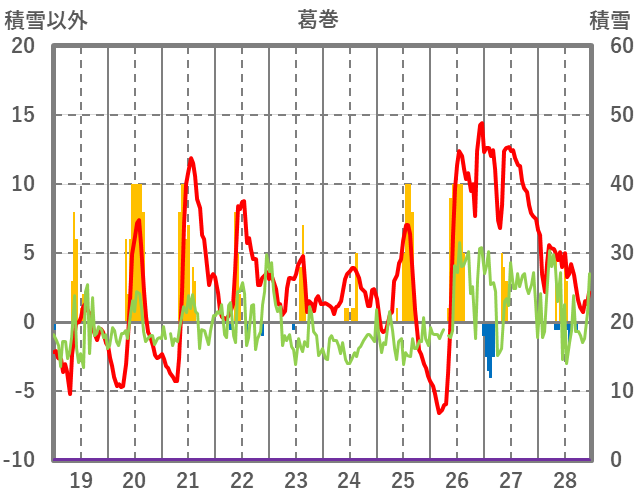 | 日 | 時 | 気温 | 降水 | 風向/風速 | 日照 | 積雪 | 降雪 |