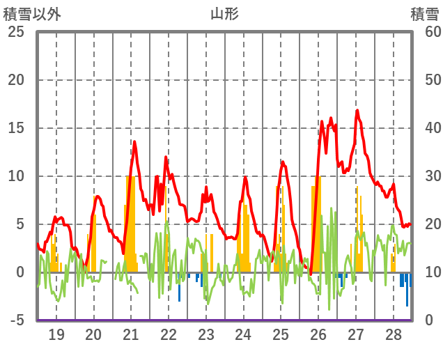 | 日 | 時 | 気温 | 降水 | 風向/風速 | 日照 | 積雪 | 降雪 |