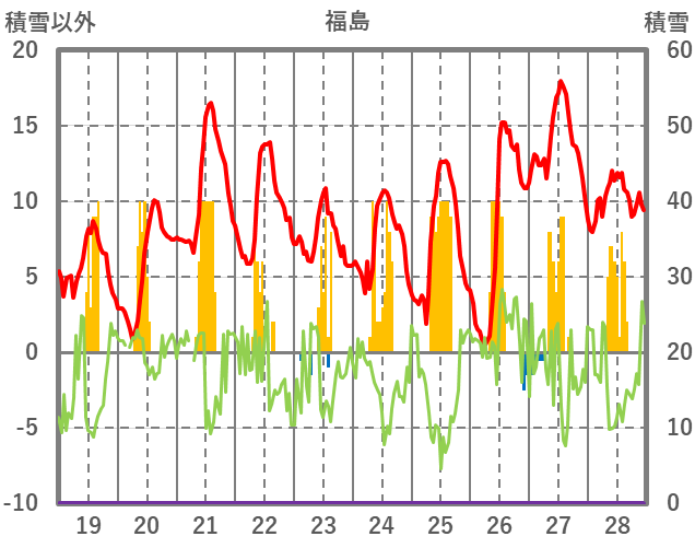 | 日 | 時 | 気温 | 降水 | 風向/風速 | 日照 | 積雪 | 降雪 |