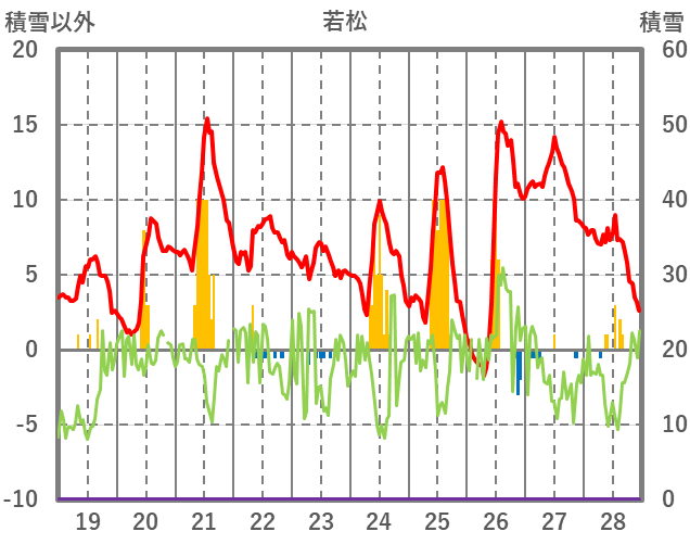 | 日 | 時 | 気温 | 降水 | 風向/風速 | 日照 | 積雪 | 降雪 |