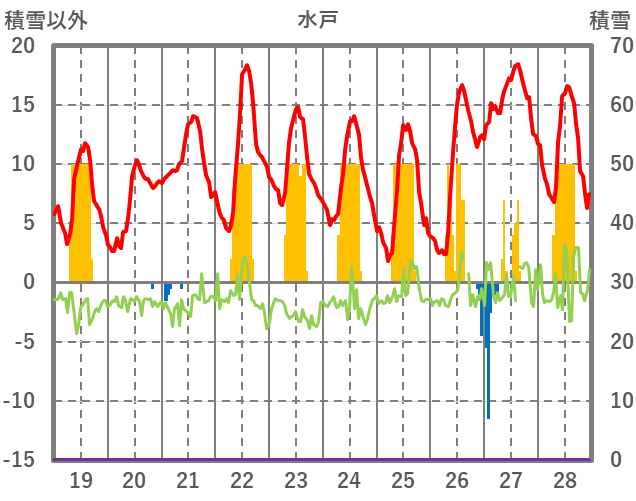 | 日 | 時 | 気温 | 降水 | 風向/風速 | 日照 | 積雪 | 降雪 |