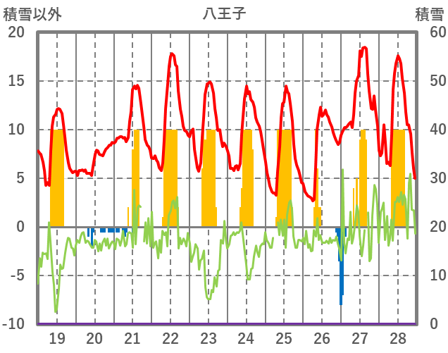 | 日 | 時 | 気温 | 降水 | 風向/風速 | 日照 | 積雪 | 降雪 |