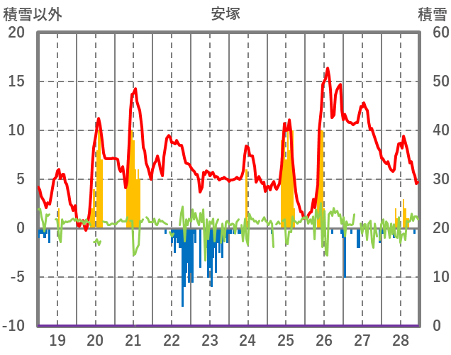 | 日 | 時 | 気温 | 降水 | 風向/風速 | 日照 | 積雪 | 降雪 |