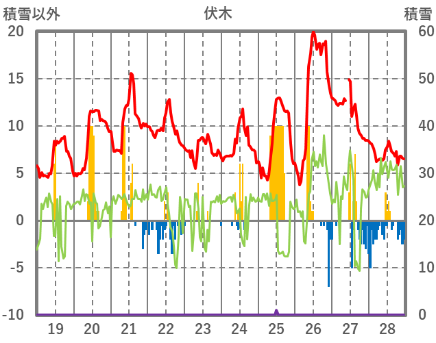 | 日 | 時 | 気温 | 降水 | 風向/風速 | 日照 | 積雪 | 降雪 |