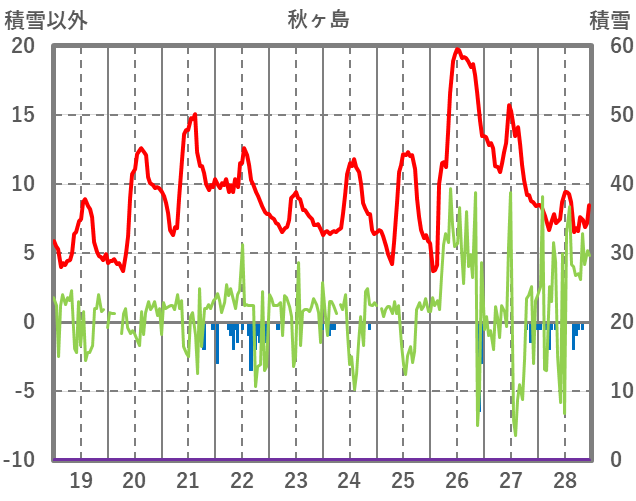 | 日 | 時 | 気温 | 降水 | 風向/風速 | 日照 | 積雪 | 降雪 |