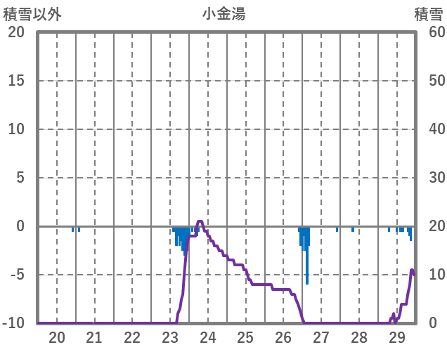 | 日 | 時 | 気温 | 降水 | 風向/風速 | 日照 | 積雪 | 降雪 |