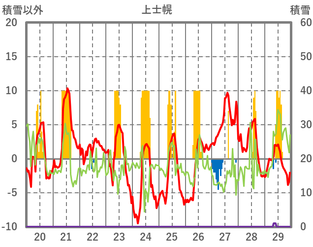 | 日 | 時 | 気温 | 降水 | 風向/風速 | 日照 | 積雪 | 降雪 |