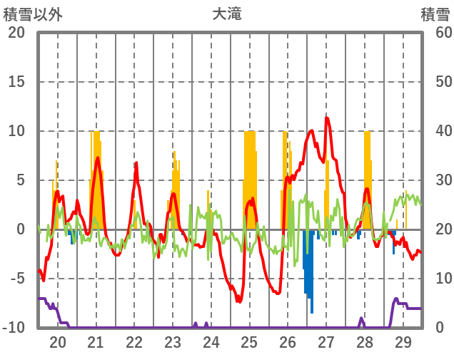 | 日 | 時 | 気温 | 降水 | 風向/風速 | 日照 | 積雪 | 降雪 |