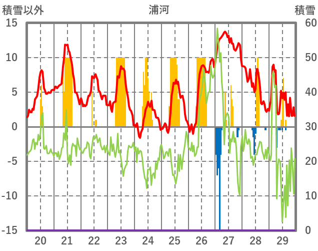 | 日 | 時 | 気温 | 降水 | 風向/風速 | 日照 | 積雪 | 降雪 |