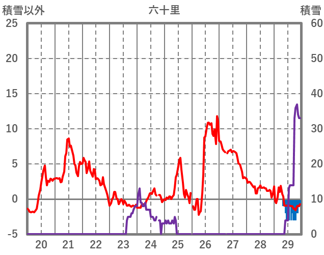 | 日 | 時 | 気温 | 降水 | 風向/風速 | 日照 | 積雪 | 降雪 |