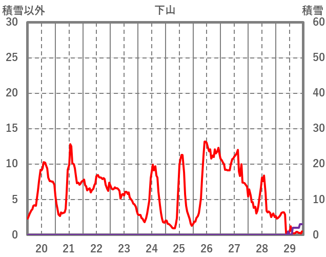 | 日 | 時 | 気温 | 降水 | 風向/風速 | 日照 | 積雪 | 降雪 |