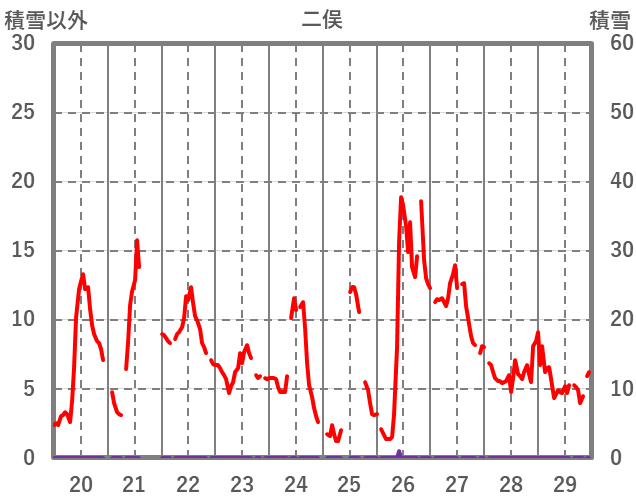 | 日 | 時 | 気温 | 降水 | 風向/風速 | 日照 | 積雪 | 降雪 |