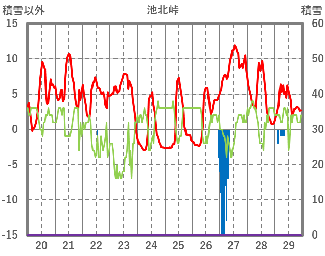 | 日 | 時 | 気温 | 降水 | 風向/風速 | 日照 | 積雪 | 降雪 |