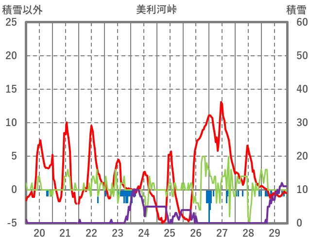 | 日 | 時 | 気温 | 降水 | 風向/風速 | 日照 | 積雪 | 降雪 |