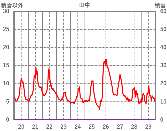 | 日 | 時 | 気温 | 降水 | 風向/風速 | 日照 | 積雪 | 降雪 |