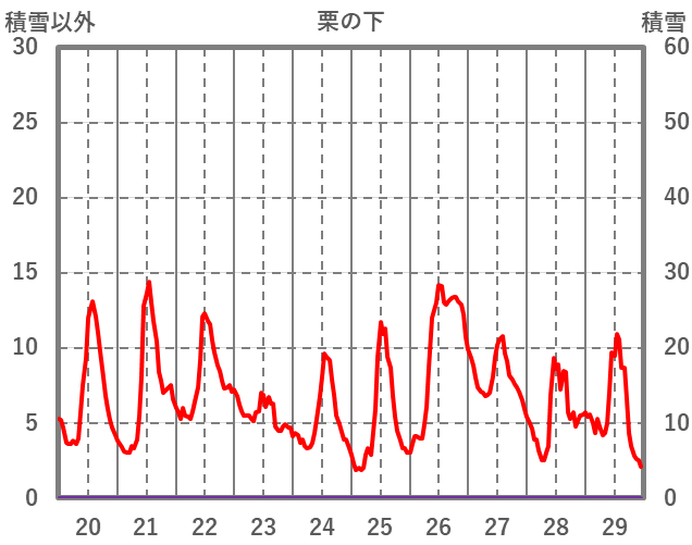 | 日 | 時 | 気温 | 降水 | 風向/風速 | 日照 | 積雪 | 降雪 |