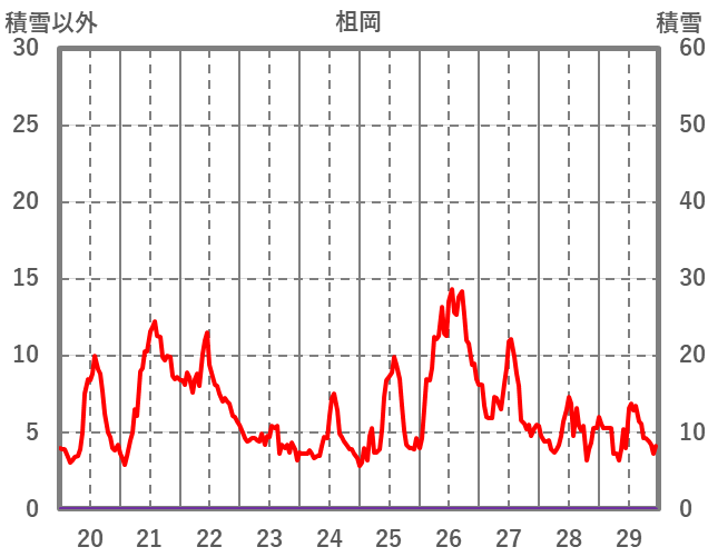| 日 | 時 | 気温 | 降水 | 風向/風速 | 日照 | 積雪 | 降雪 |